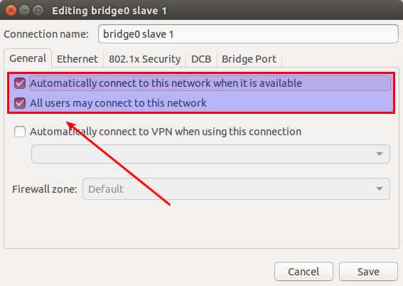 Question: 我需要在我的Ubuntu主机上建立一个Linux网桥,共享一个网卡给其他一些虚拟主机或在主机上创建的容器。我目前正在Ubuntu上使用网络管理器(Network Manager),所以最好>能使用网络管理器来配置一个网桥。我该怎么做?