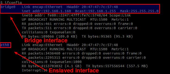 同时,检查可用的接口。提醒一下,网桥接口必须已经取代了任何你的以太网卡接口拥有的IP地址。