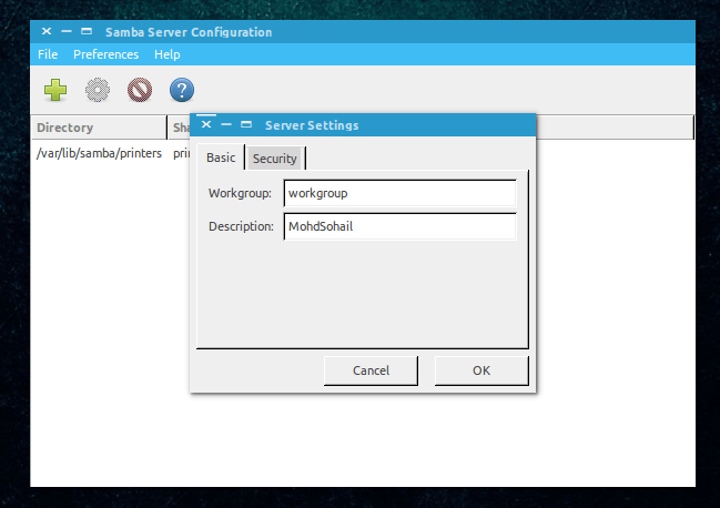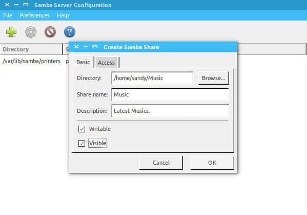 完成后点击OK。现在做个深呼吸。你已经在Samba的帮助下成功创建一个网络。然后重启网络或Samba服务,准备好和其它电脑共享文件。