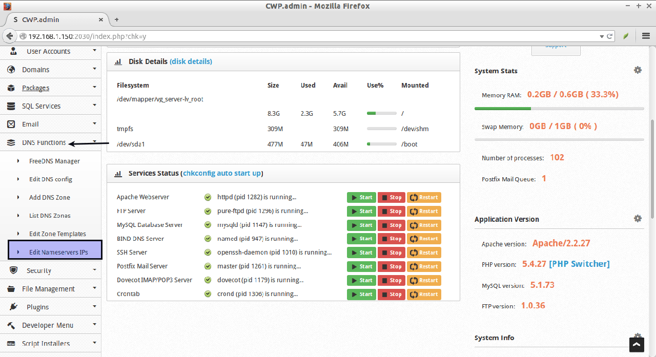 为建立域名服务器,找到DNS Functions -> Edit nameservers IPs。