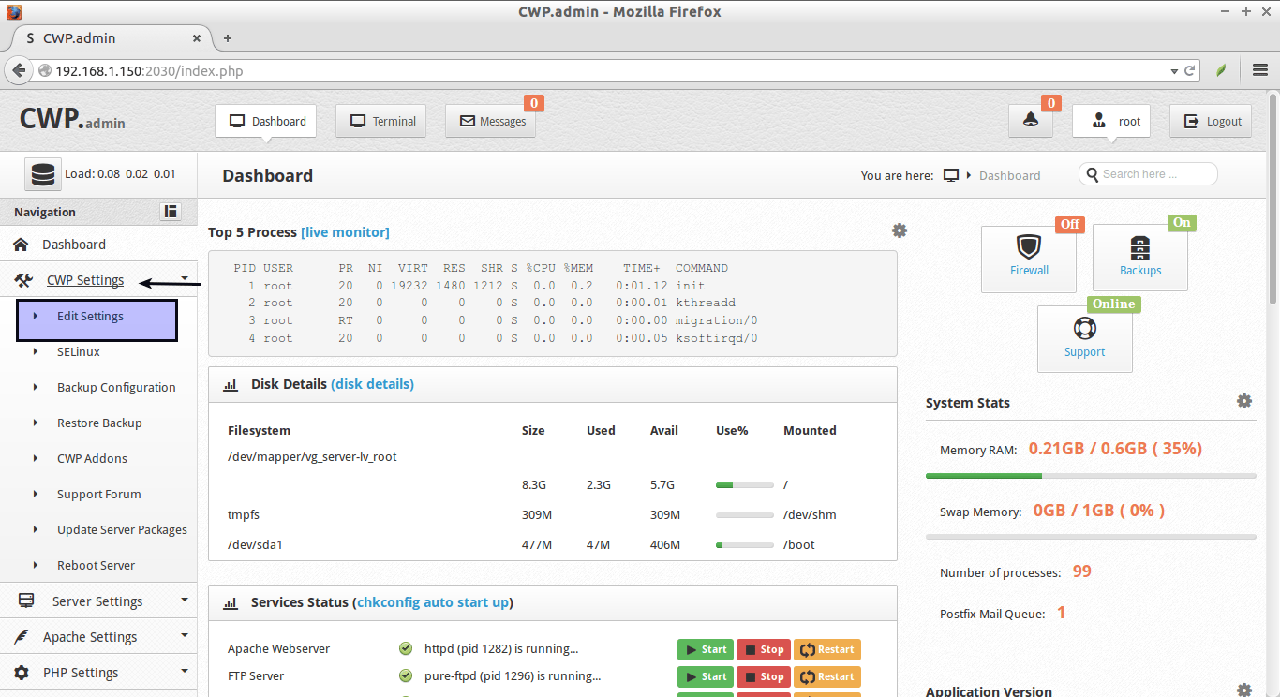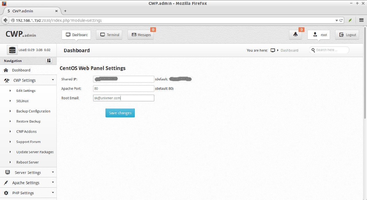 在你的主机上托管网站,这是非常重要的一步。为了建立共享IP,进入CWP Setting -> Edit settings。