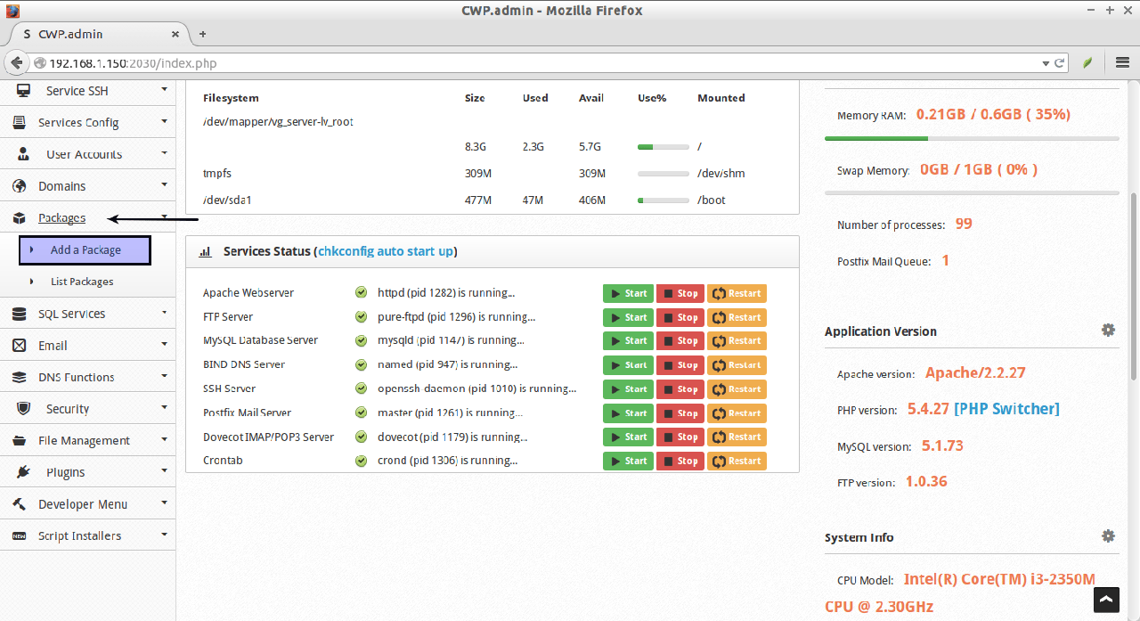 CWP有很多的特性和免费的服务。如我前面提到的一样,CWP会在你的服务器上自动安装全套的LAMP服务(apache,php,phpmyadmin,webmail,mailserver等等)。