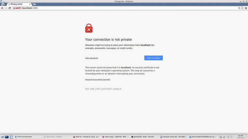 如果你使用的是自签名的SSL证书,你会在浏览器中看到一个警告信息。继续访问即可。
