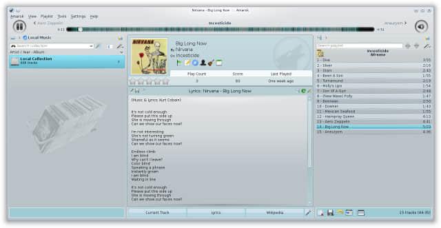 如果你使用KDE环境,我推荐 Amarok。它具有 很多管理音乐的特性 而且它还能与KDE桌面环境无缝兼容。它有很多实用的特性如集成了 Last.FM、文件跟踪、动态播放列表及脚本支持。它甚至会自动在你播放曲目时,自动下载艺术家封面。
