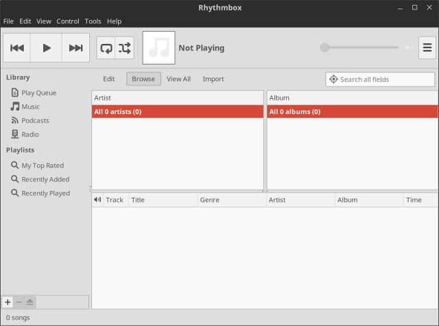 Rhythmbox是一个更好基于GTK的桌面环境的轻量级的曲库替代品。尽管如此,它也还是有一些自己的特性的。它也支持Last.FM,同时还能无缝播放并与其它如 Nautilus、XChat及Pidgin 等进行整合。
