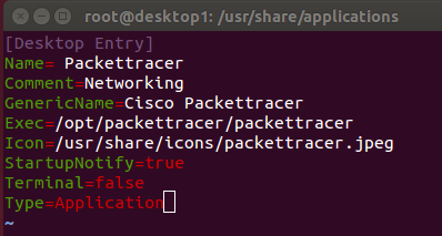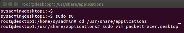 # sudo su # cd /usr/share/applications # sudo vim packettracer.desktop