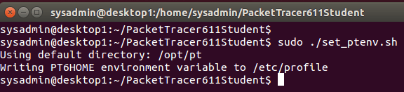 要使用Packet Tracer工作,我们需要设置环境,Cisco已经提供了环境脚本,我们需要以root用户来运行该脚本以设置环境变量。