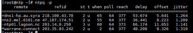我们可以使用 ntpq 命令来检查本地服务器的时钟如何通过 NTP 同步。