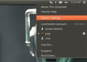 你可以用多种方法打开系统设置。其中一种最快的方式是点击右上角(RTL系统是左上角)的 Cog 图标并选择‘系统设置’菜单快捷方式。