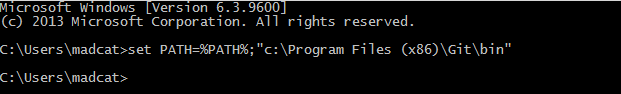 set PATH=%PATH%;"c:\Program Files (x86)\Git\bin"