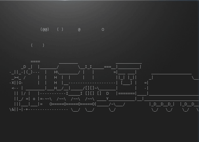 在你的终端显示蒸汽机车的ASCII图形。如果你需要它,安装并运行sl命令。sl -l可以看到一个袖珍版本的。或者,如果你真想在上边花费更多时间,运行sl -h。这会显示一个完整的或者,还包括乘客车厢。