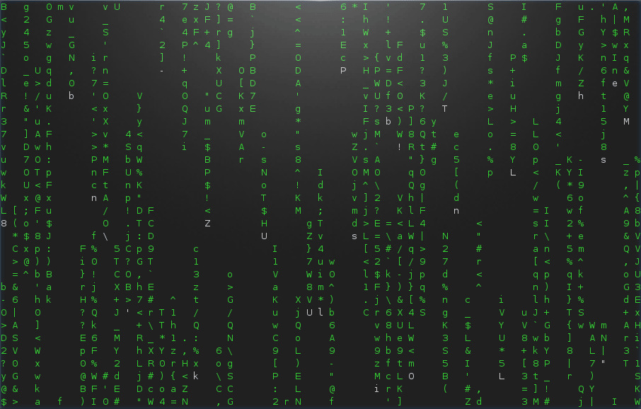 想让你的终端显示滚动的文字、l33t和Matrix电影中的坠落数码?cmatrix是你的朋友。你甚至可以用它输出不同的颜色,非常华丽。使用man cmatrix学习使用方法。或者使用更好的方法,“man cmatrix | lolcat”。这确实是你在Linux终端可以做的最没实际用途却又精彩的事情了。
