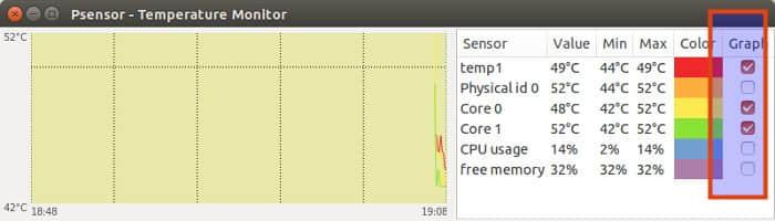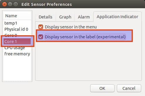 Psensor最新的版本同样提供了Ubuntu中的指示小程序,这样使得在Ubuntu中监控温度变得更加容易。你可以选择在面板的右上角显示温度。它还会在温度上过阈值后通知。