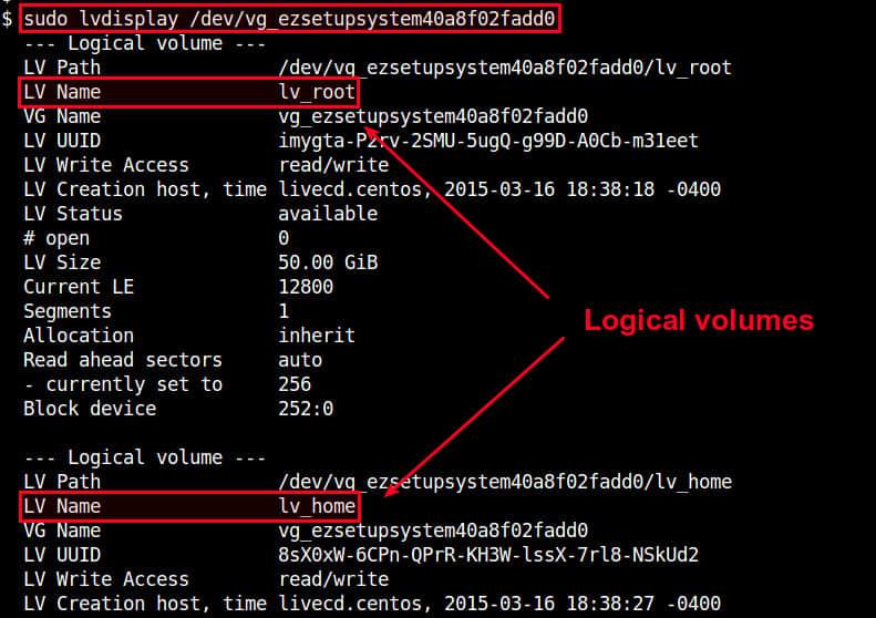 $ sudo lvdisplay /dev/vg_ezsetupsystem40a8f02fadd0