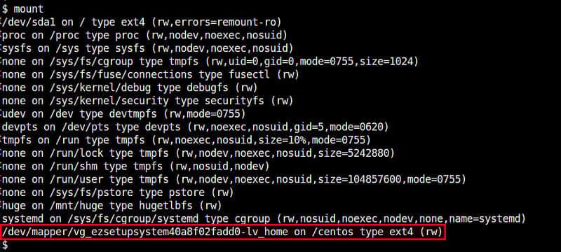 $ sudo mount /dev/vg_ezsetupsystem40a8f02fadd0/lv_home /mnt