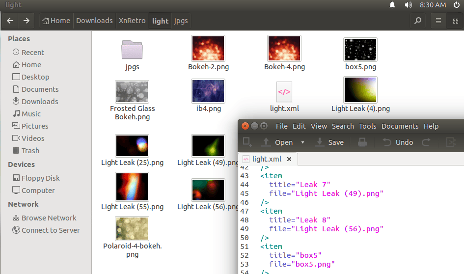 要使用15 种光影效果,你需要在 XnRetro 的‘light’文件夹下将 .jpg 文件重新保存成 .png 文件。编辑‘light.xml’来匹配新的文件名,点击保存那么灯光效果就可以没有问题的加载进 XnRetro 了。