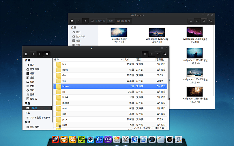 设计师团队为深度桌面环境2.0设计了全新的深度主题。深度主题黑色为主色调,坚持简洁和拟物为风格,让深度桌面环境2.0更为眩目多彩!