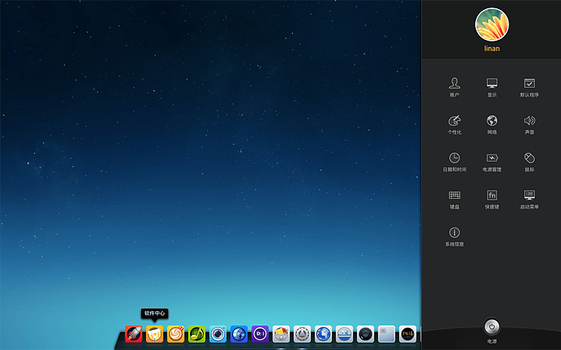 全新的控制中心使用了更为清晰明了的分类方式,并且针对广大用户的意见进行修改。该版本开始提供强大的的主题管理、新增Grub管理器管理、增强了多屏显示功能、改善网络功能。