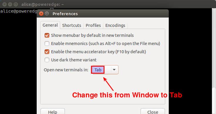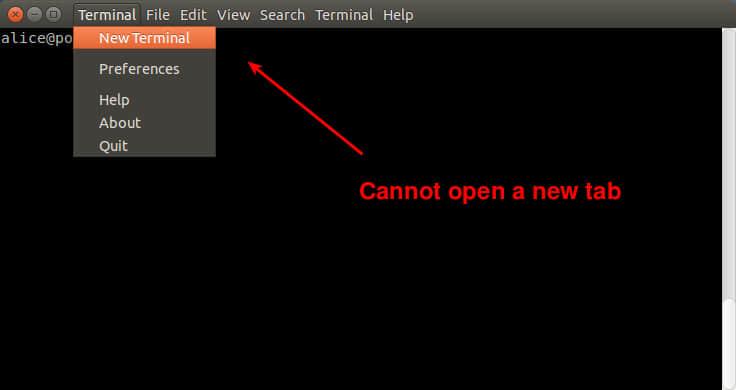 在 Ubuntu 14.10 或之前的版本中,gnome-terminal 允许你在终端窗口中开启一个新标签或一个终端窗口。但从 Ubuntu 15.04开始,gnome-terminal 移除了“新标签”选项。这实际上并不是一个 bug,而是一个合并新标签和新窗口的举措。GNOME 3.12 引入了单独的“开启终端”选项。开启新终端标签的功能从终端菜单移动到了首选项中。