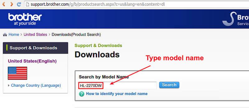 在准备阶段,进入兄弟官方支持网站,输入你的型号(比如:HL-2270DW)搜索你的兄弟打印机型号。