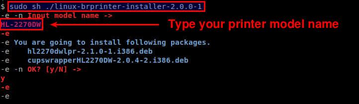 $ sudo sh ./linux-brprinter-installer-2.0.0-1