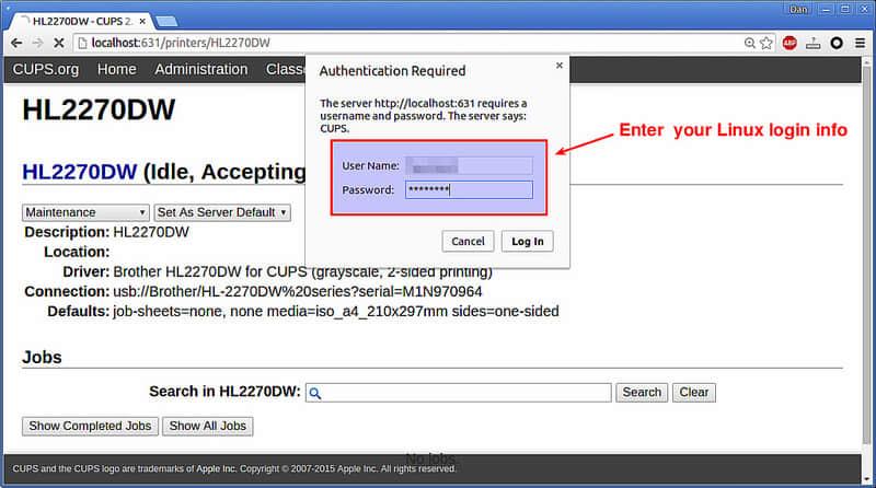 下面是如何在Linux中安装和配置兄弟打印机驱动。本篇教程中,我会演示安装HL-2270DW激光打印机的USB驱动。
