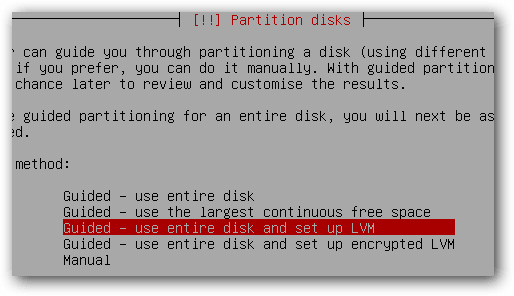 要使用LVM安装Ubuntu你需要使用另外的安装CD。从下面的链接中下载并烧录到CD中或者使用unetbootin创建一个USB盘。