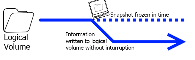 LVM 获取快照的时候,会有一张和逻辑卷完全相同的“照片”,该“照片”可以用于在不同的硬盘上进行备份。生成一个备份的时候,任何需要添加到逻辑卷的新信息会如往常一样写入磁盘,但会跟踪更改使得原始快照永远不会损毁。