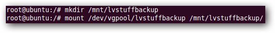 mkdir /mnt/lvstuffbackup mount /dev/vgpool/lvstuffbackup /mnt/lvstuffbackup