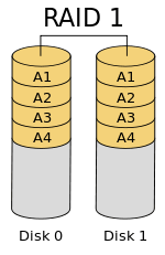 - 镜像被用于 RAID 1 和 RAID 10。镜像会自动备份数据。在 RAID 1 中,它会保存相同的内容到其他盘上。