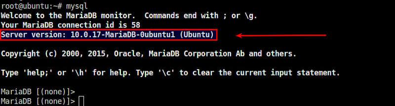 第一种找出版本的方法是登录MariaDB服务器,登录之后,你会看到一些MariaDB的版本信息。