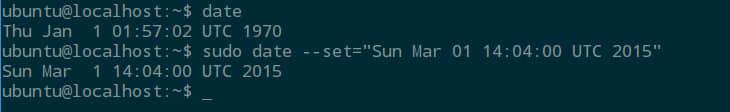 $ sudo date --set="Sun Apr 04 17:43:26 UTC 2015"