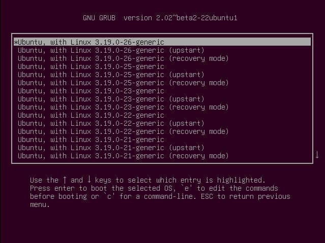 GRUB管理器为每个旧内核都维护了一个GRUB入口,以备你想要使用它们。