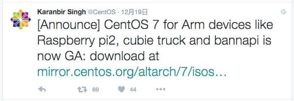 CentOS 7 ARM 版正式发布:支持树莓派2/香蕉派/CubieTruck