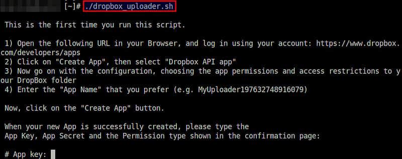 要配置 Dropbox Uploader,只需运行 dropbox_uploader.sh 即可。当你第一次运行这个脚本时,它将请求得到授权以使得脚本可以访问你的 Dropbox 账户。