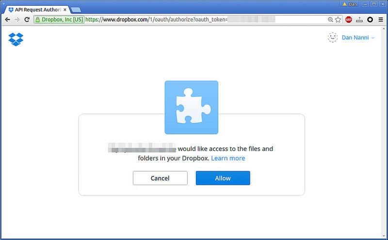 接着通过浏览器访问那个 oAUTH 网址,并同意访问你的 Dropbox 账户。
