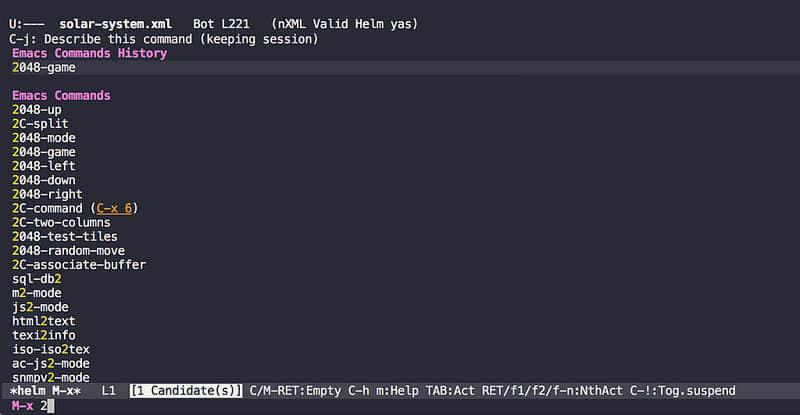 一些使用者喜欢它,但是其他人没有这么大的使用热情。我是后者的一部分。但在拥有这样一个庞大的追随者的情况下,是不能不提到它的。Helm 旨在完全变换你的 Emacs 使用体验。简单来说,Helm 是一个在 Emacs 中帮助你快速找到一个文件或命令的框架。根据你的输入,它将尝试使用词语自动完成来引导你将大脑的念头变为行动。起初感觉有点奇怪,但对一些人来说,Helm 本身就是一个信仰。虽然我不是 Helm 的粉丝,我欣赏 helm-occur 这一个伟大的工具可以在一个大文档搜索字符串并且在一个单独的缓冲区显示所有匹配结果,以便很容易在它们之间跳转。如果你正在寻找一个快速演示来了解 Helm 能做什么,我推荐这篇文章。