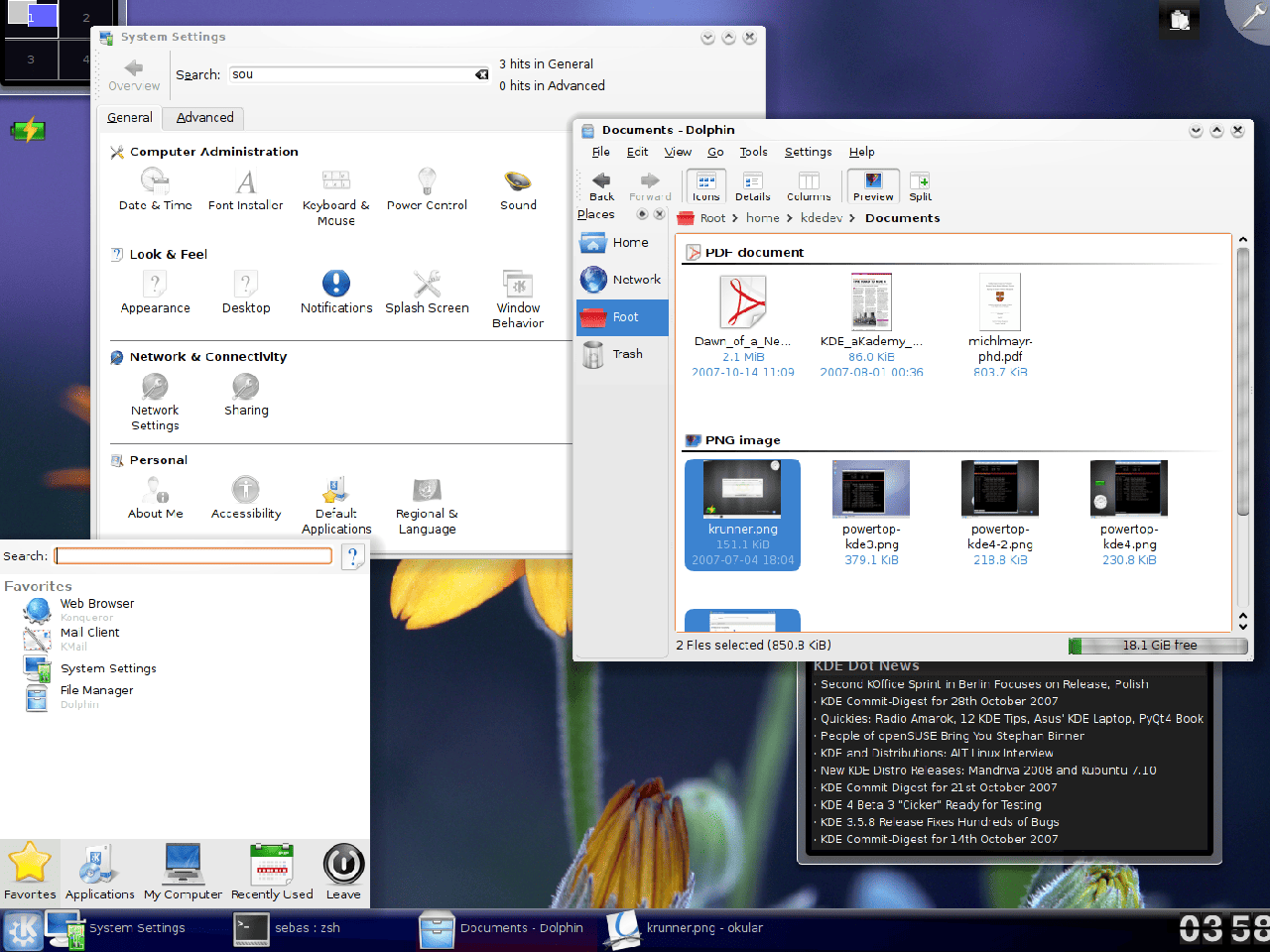 KDE SC 4.13: Nepomuk 语义搜索功能替代了桌面上的原有的 Baloo 搜索。 KDE SC 4.13 以53个语言版本发布。