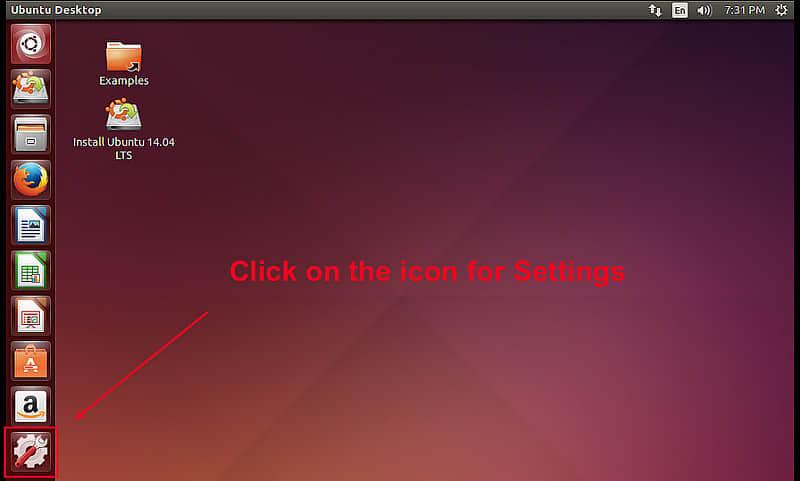 一旦进入 live Ubuntu 桌面,点击左侧设置图标。