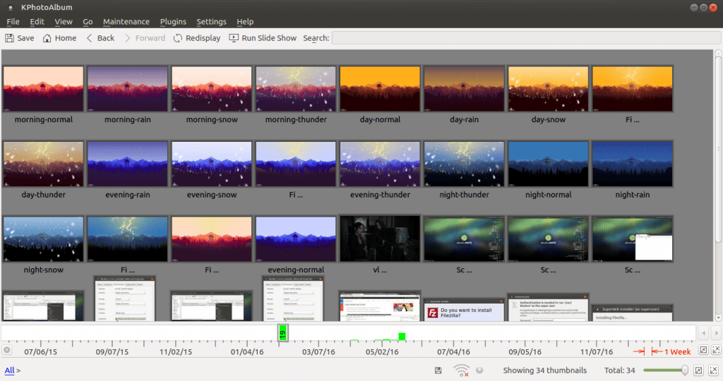 KPhotoAlbum 是一款在 KDE 桌面环境下的图像管理应用。它有一些独特的功能:分类和基于时间浏览。你可以基于人物、地点、时间分类;另外在用户图形界面底部会显示时间栏。