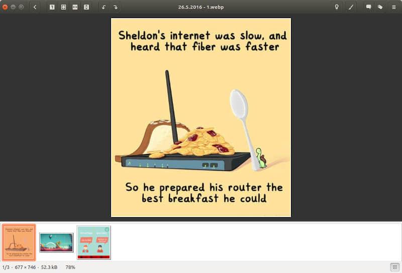 这无非是意味着我们不能在 Linux 上用 GNOME 图片查看器打开 WebP 文件而已。一个更好的替代品,gThumb,默认就支持 WebP 图片。