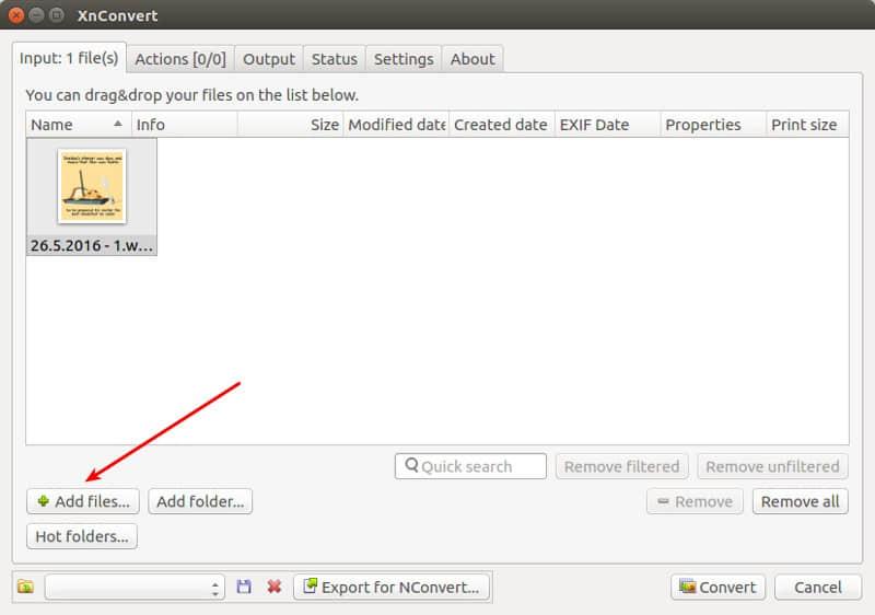 打开 XnConvert 并选择输入文件: