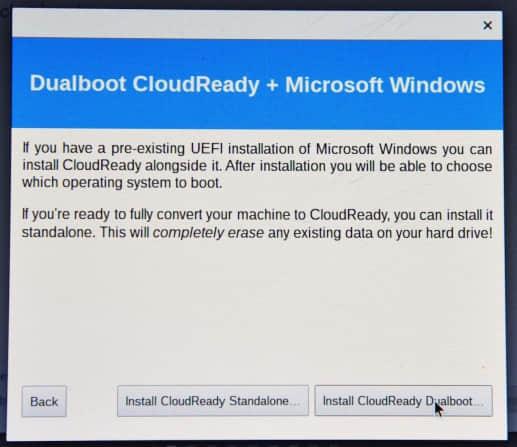 你可以安装 Chromium OS 和其它系统的双系统启动,但另一个系统这时应该已经安装好了。