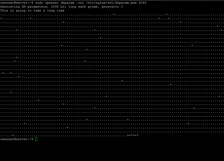 $ sudo openssl dhparam -out /etc/nginx/ssl/dhparam.pem 2048