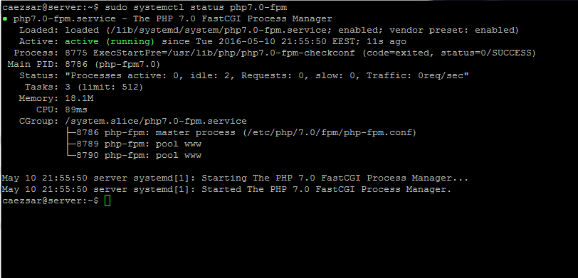 $ sudo systemctl start php7.0-fpm $ sudo systemctl status php7.0-fpm