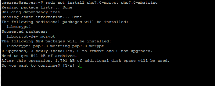 $ sudo apt install php7.0-mcrypt php7.0-mbstring