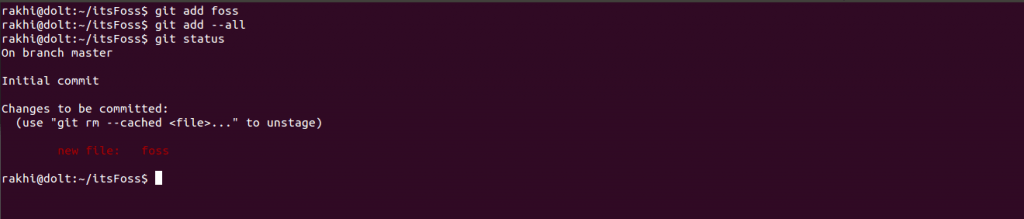 这会添加一个新文件到暂存区以提交。如果你想添加每个新文件,输入: