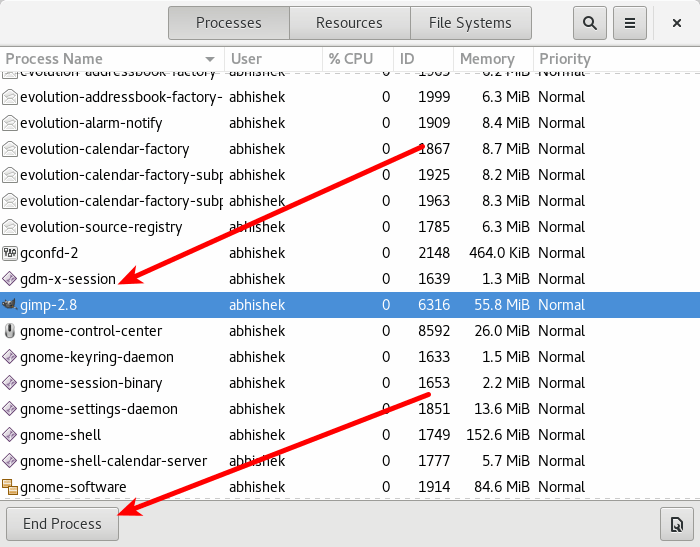 当你启动系统监视器的时候,它会向你展示所有正在运行的进程及其消耗的内存。