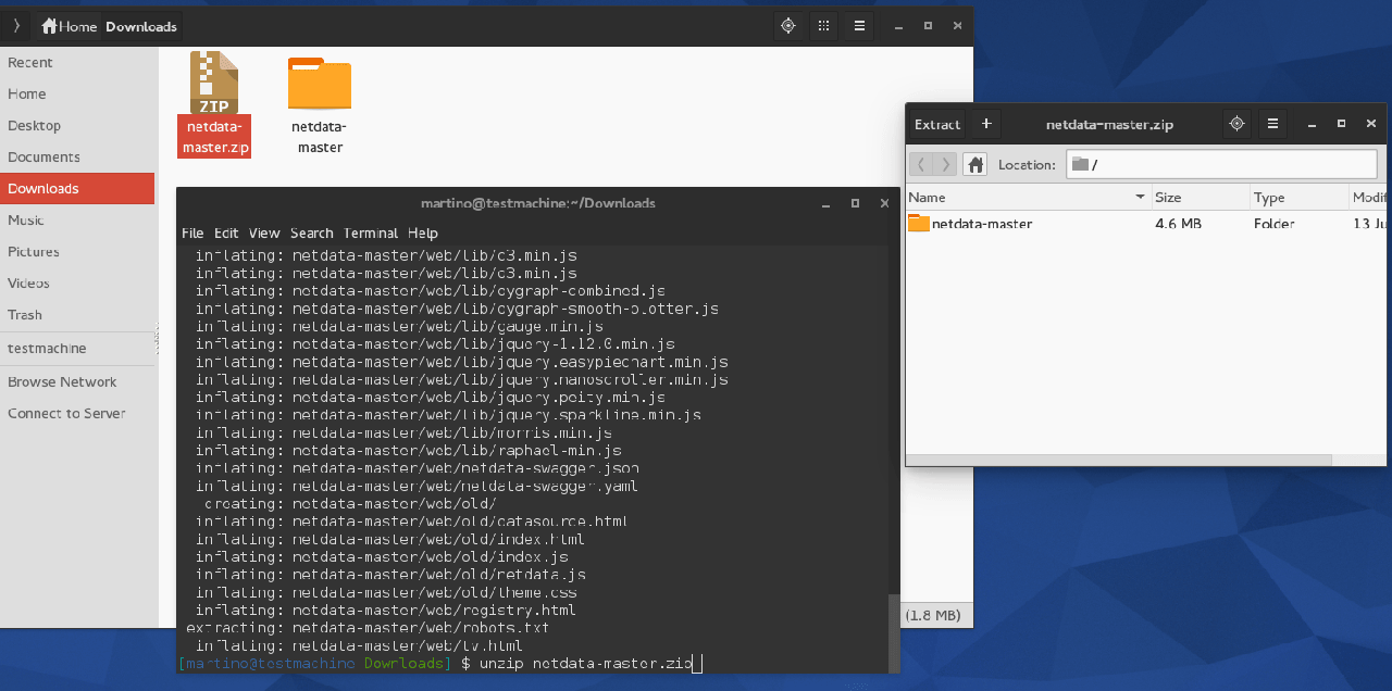 $ cd ~/Downloads $ unzip netdata-master.zip