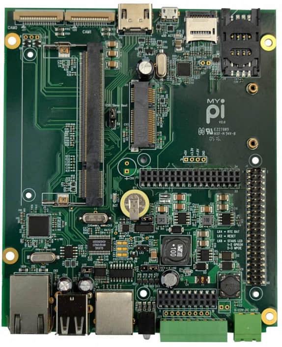 在 Kickstarter 众筹网站上,一个叫 “MyPi” 的项目用树莓派计算模块制作了一款 SBC( 单板计算机 ),提供一个 mini-PCIe 插槽,串口,宽范围输入电源,以及模块扩展等功能。